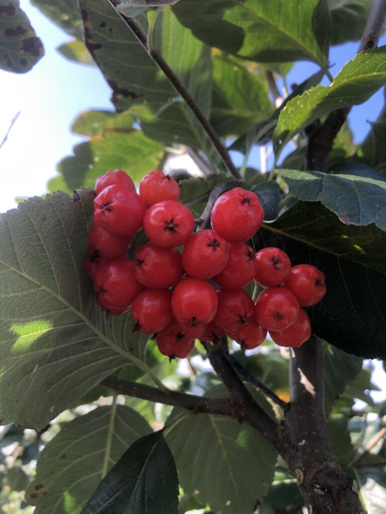 - bær (bringebær, solbær, og ei mengde andre dyrka eller ville bær)
