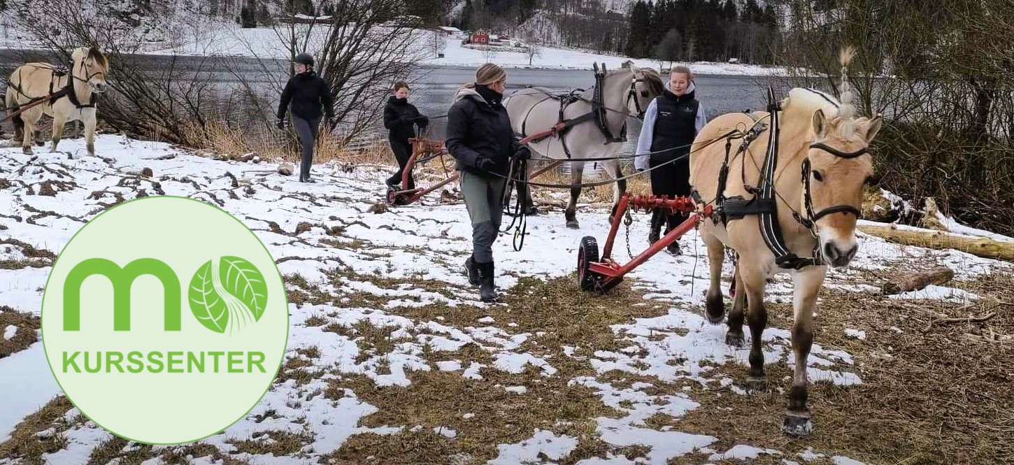 Kurs i allsidig arbeidskøyring med hest. Kurset gir grundig innføring i puss og pleie av hest og utstyr, køyreteknikk, sikker handtering og sikkerheit når ein brukar hest.